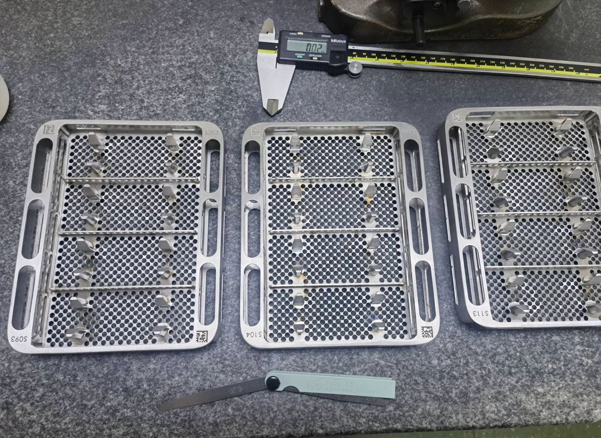 After welding, we inspect the critical relationship between the pins and the surrounding structure, focusing on position, angle, and consistency across the full assembly. This helps ensure the pins do not simply “fit” into the part, but actually locate the instruments correctly and repeatably in real use.